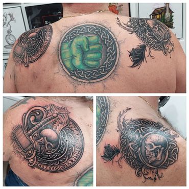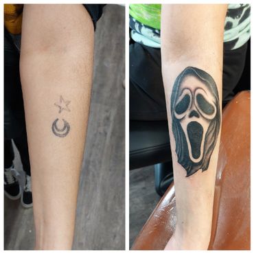 I love the challenge of covering up an existing tattoo and eliminating something unwanted from someone’s body. The result is very rewarding! I also love bringing old tattoos back to life with new bold inks and modern style. Most cover-ups and reworks will require an in-person consultation prior to tattoo appointment.
